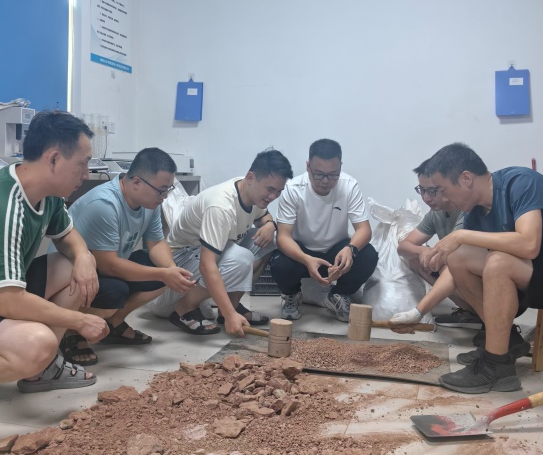 通過(guò)現(xiàn)場(chǎng)實(shí)踐,團(tuán)隊(duì)系統(tǒng)掌握了重型擊實(shí)試驗(yàn)四大核心環(huán)節(jié)的標(biāo)準(zhǔn)操作,包括源頭精準(zhǔn)取樣、制樣拌料控均、悶料含水精控及擊實(shí)規(guī)范施力,既提高了對(duì)石渣料重型擊實(shí)試驗(yàn)過(guò)程的直觀(guān)認(rèn)識(shí),又積累了石渣填筑料物理力學(xué)參數(shù)的寶貴實(shí)踐經(jīng)驗(yàn),為以后工作中類(lèi)似中小河流域治理項(xiàng)目提供“即查即用”的數(shù)據(jù)支撐。