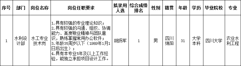 水工專業(yè)技術(shù)崗擬錄用人員公示