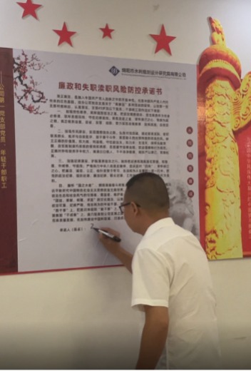 根據(jù)公司黨總支關(guān)于“青廉說”系列活動指示要求,支部組織45周歲以下的全體黨員、干部職工開展踐諾儀式,集體朗讀并簽訂了《廉政和失職瀆職風(fēng)險防控承諾書》,進(jìn)一步增強(qiáng)了廣大黨員、干部職工知敬畏、存戒懼、守底線的規(guī)矩意識和責(zé)任意識。大家紛紛表示會嚴(yán)格遵守廉潔履職各項(xiàng)規(guī)定,將《承諾書》要求作為日常工作的行為準(zhǔn)則,把承諾內(nèi)容化作實(shí)際行動,隨時提醒自己、警示自己,堅決做到嚴(yán)守紀(jì)律底線、不越紀(jì)律紅線。